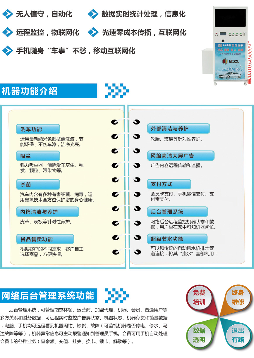 無人值守,自動化; 數據實時統計處理,信息化; 遠程監控,物聯網化; 光速零成本傳播,互聯網化; 手機隨時“車事”不愁,移動互聯網化;